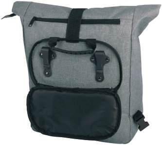 Rucksack aus recycelter, strapazierfähiger Baumwolle (370 g/m²). Großes Hauptfach mit erweiterbarer Öffnung durch Ausfalten und Clipverschluss. Zusätzliche Vordertasche mit Reißverschluss sowie eine kleine Seitentasche. Verstellbare Rückenträger. Kapazität : 25 l