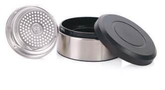 Praktisch: diese doppelwandige Edelstahl-Thermosflasche kombiniert im Körper einen großen Becher sowie einen passenden Deckel im Sockel.