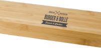Set mit vier Zubehörteilen aus rostfreiem Stahl mit Holzgriff: Messer, Tranchierer, Pinzette und Spatel. Ergänzt durch ein Schneidebrett aus Holz. Verpackt in einem Etui aus recyceltem RPET-Polyester. Ideal als Geschenk bei Firmenfeiern, für Mitarbeitende oder als Kundenpräsent.