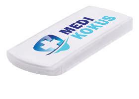 Maße: 37,7 x 21,9, x 3,8 cm W Werbedruck. Fläche: auf die Box 50 x 50 mm