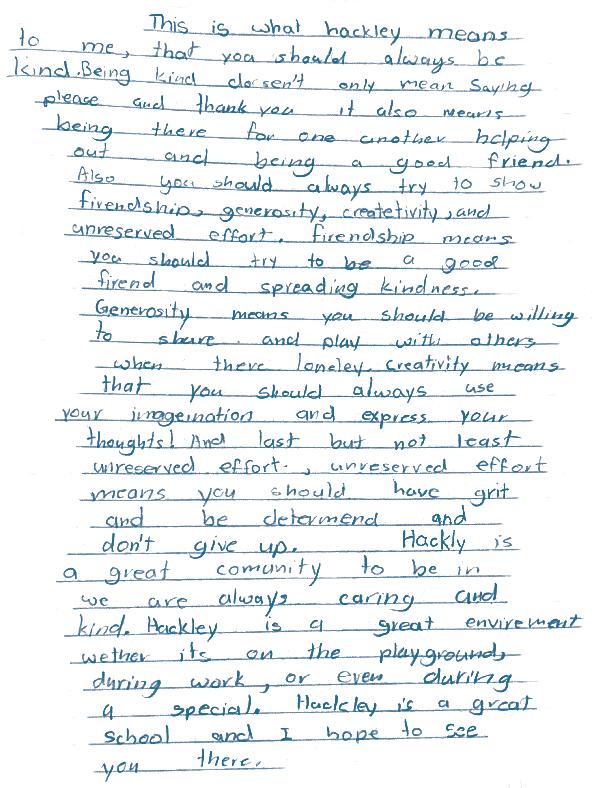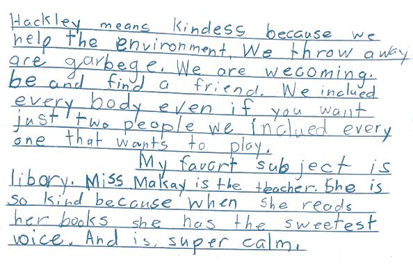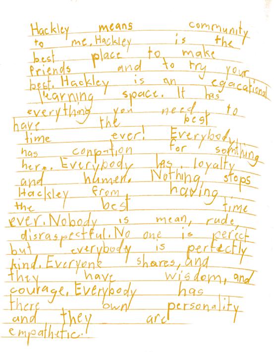 “What Hackley Means to Me” Contributions by Lower School classes 3H and 4S