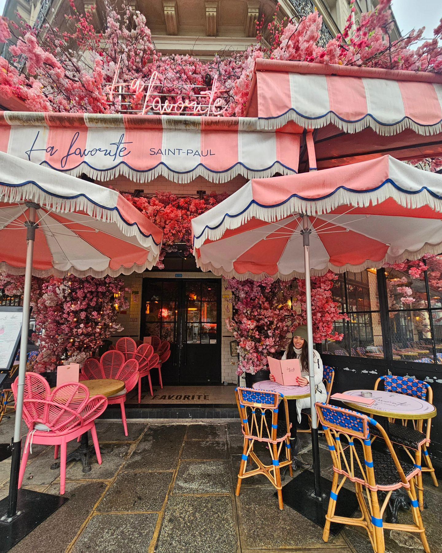 O Café mais romântico e instagramável de Paris, com sua decoração rosa e delicada. O La Favorite Saint Paul, localizado no coração do charmoso bairro de Marais, é um local encantador.