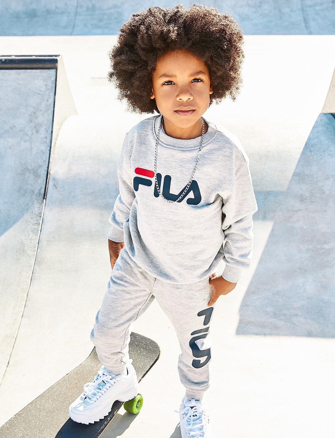 Este da Fila, aplicado no cabedal do tênis, possui composição em poliamida, que proporciona elasticidade ao produto.