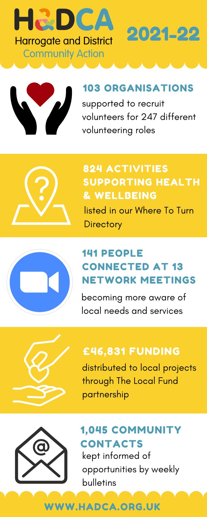 The HADCA team have risen to the challenge, with the benefit of their extensive local knowledge, to support local people, manage large numbers of volunteers and connect and collaborate within the community. I encourage you to read the Impact Report highlighting the tremendous work carried out by the HADCA team during the last 12 months.