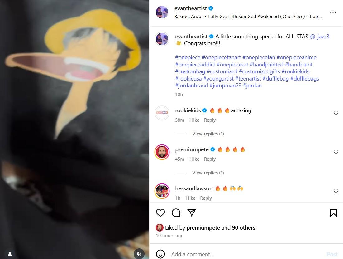 @EVANTHEARTIST CUSTOMIZING OUR JORDAN COLLECTORS' DUFFEL AND GIFTING IT TO NEW YORK YANKEES JAZZ CHISHOLM @_JAZZ3 AT THE MLB ALL STAR GAME