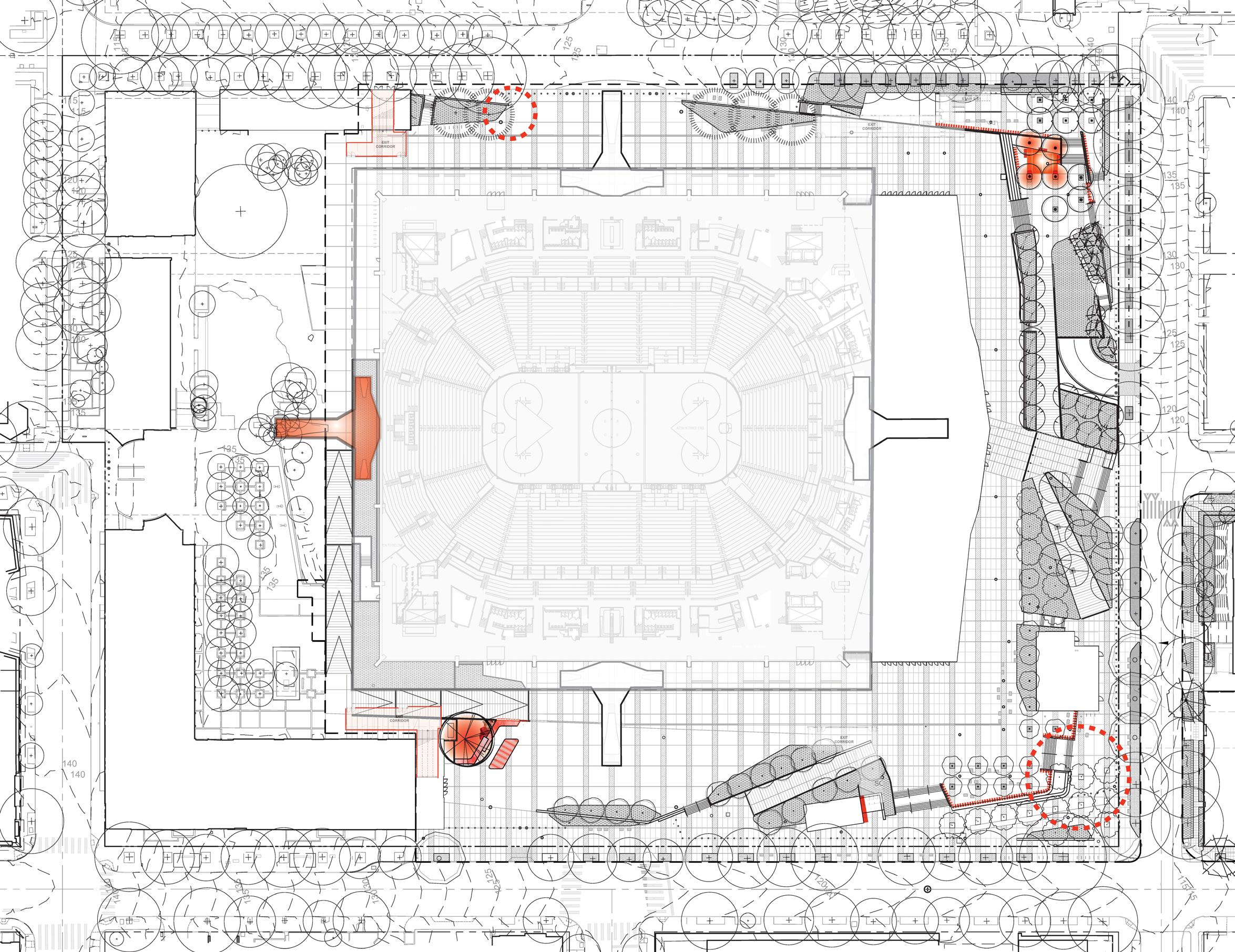 • Gateways at NE and SW plaza corners link Arena to adjacent streets and Seattle Center