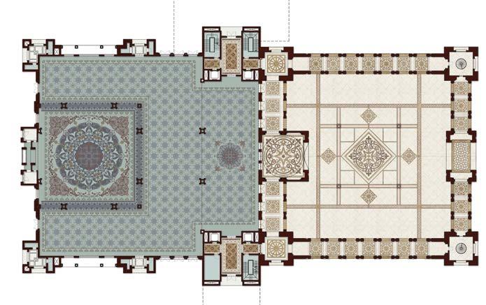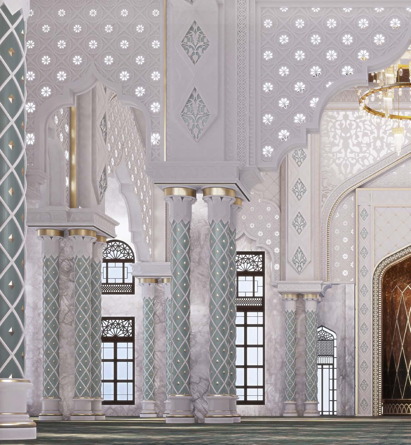 An extensive use of Islamic and local architectural motifs, patterns and ornaments are carefully integrated with the architectural features especially the arches focusing on inspiring interior architecture with its iconographies, elements and spaces to perform rituals that promote quietude and spirituality.