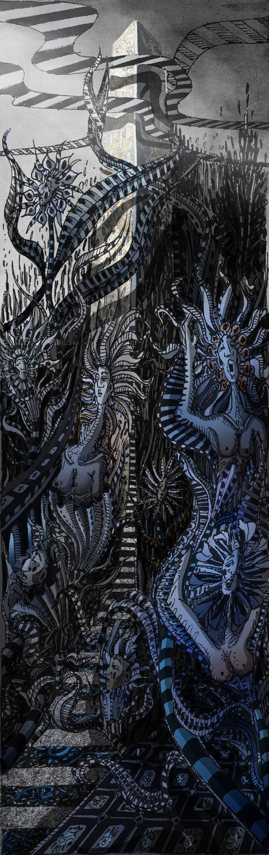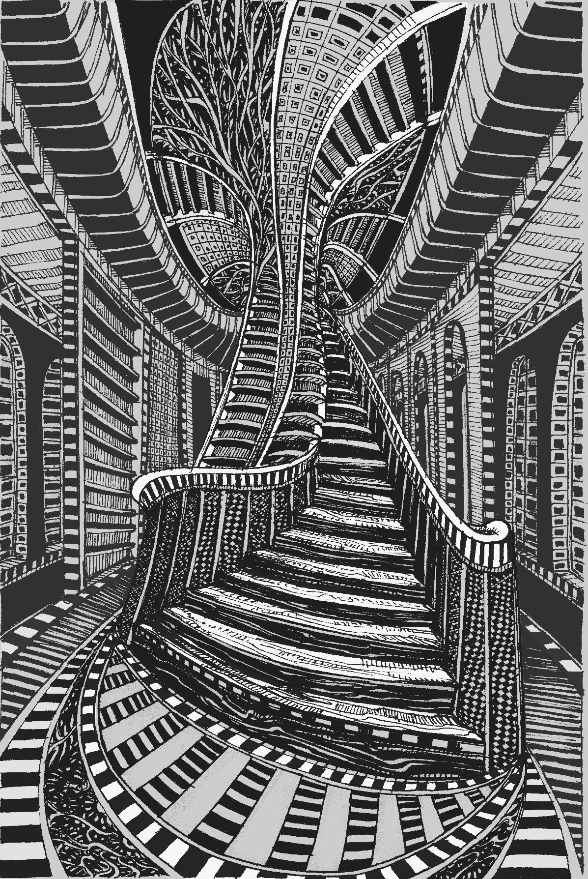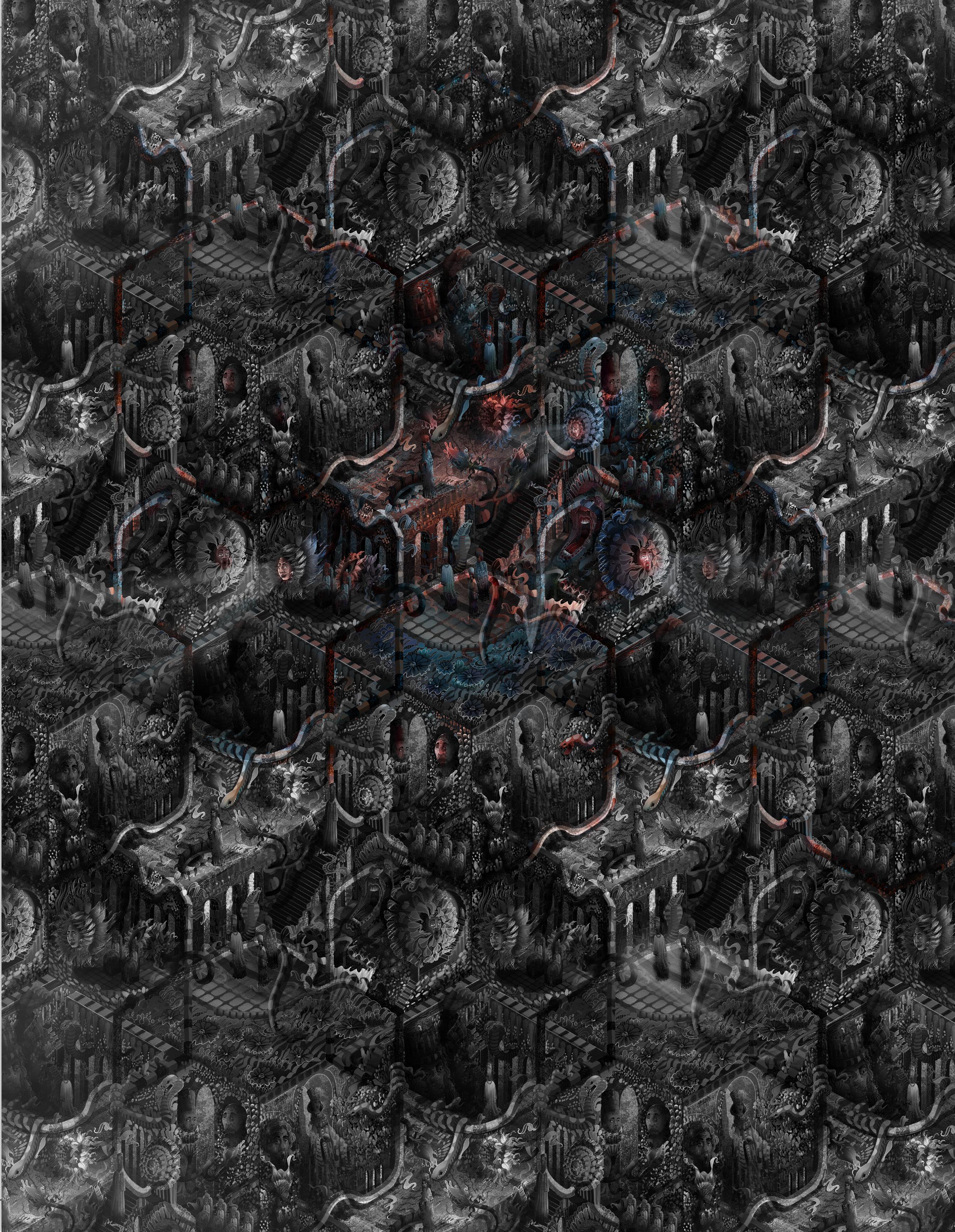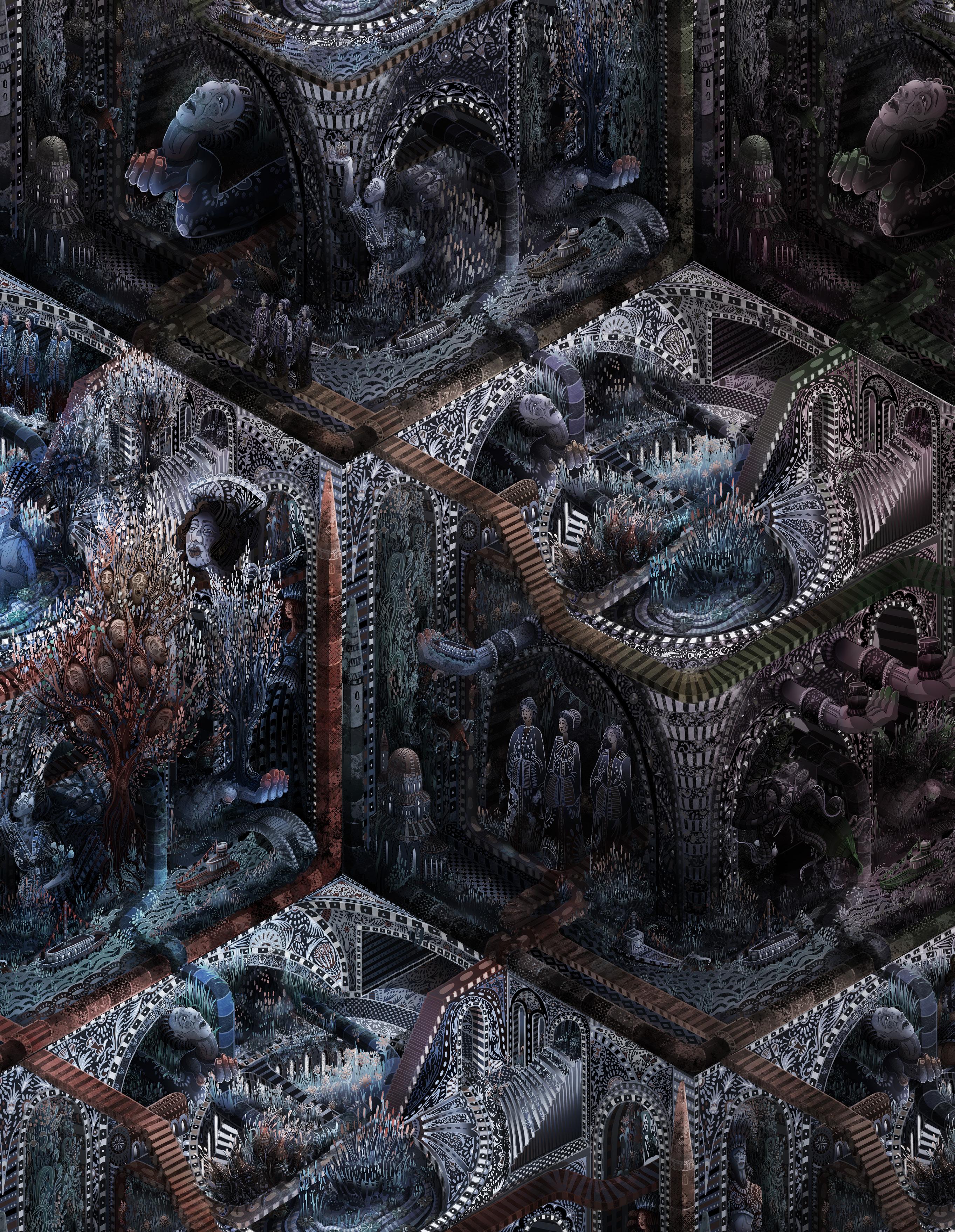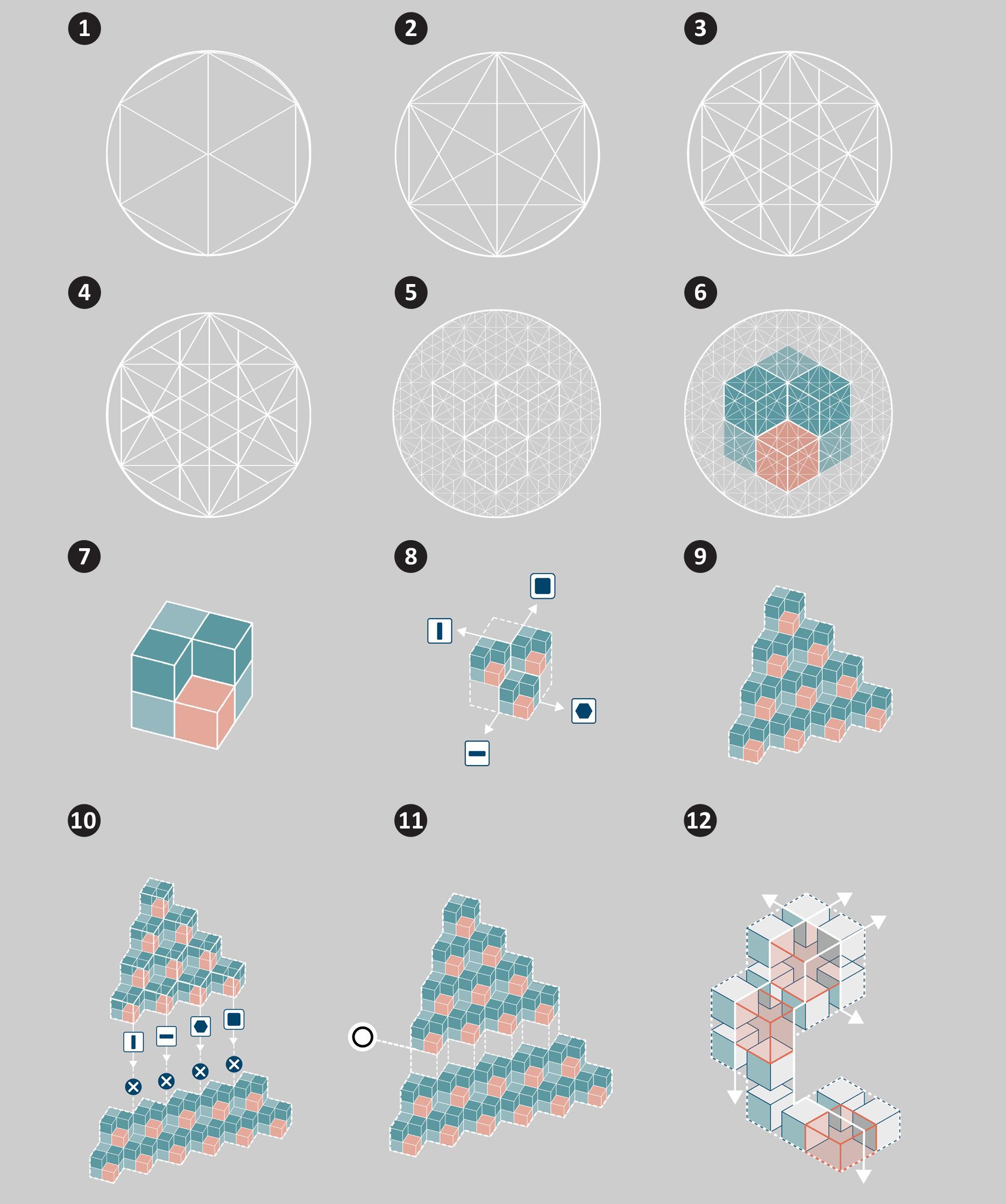 Here you can see the gradual build up of the image. The base structure is relatively simple, yet when repeated the system seems complex