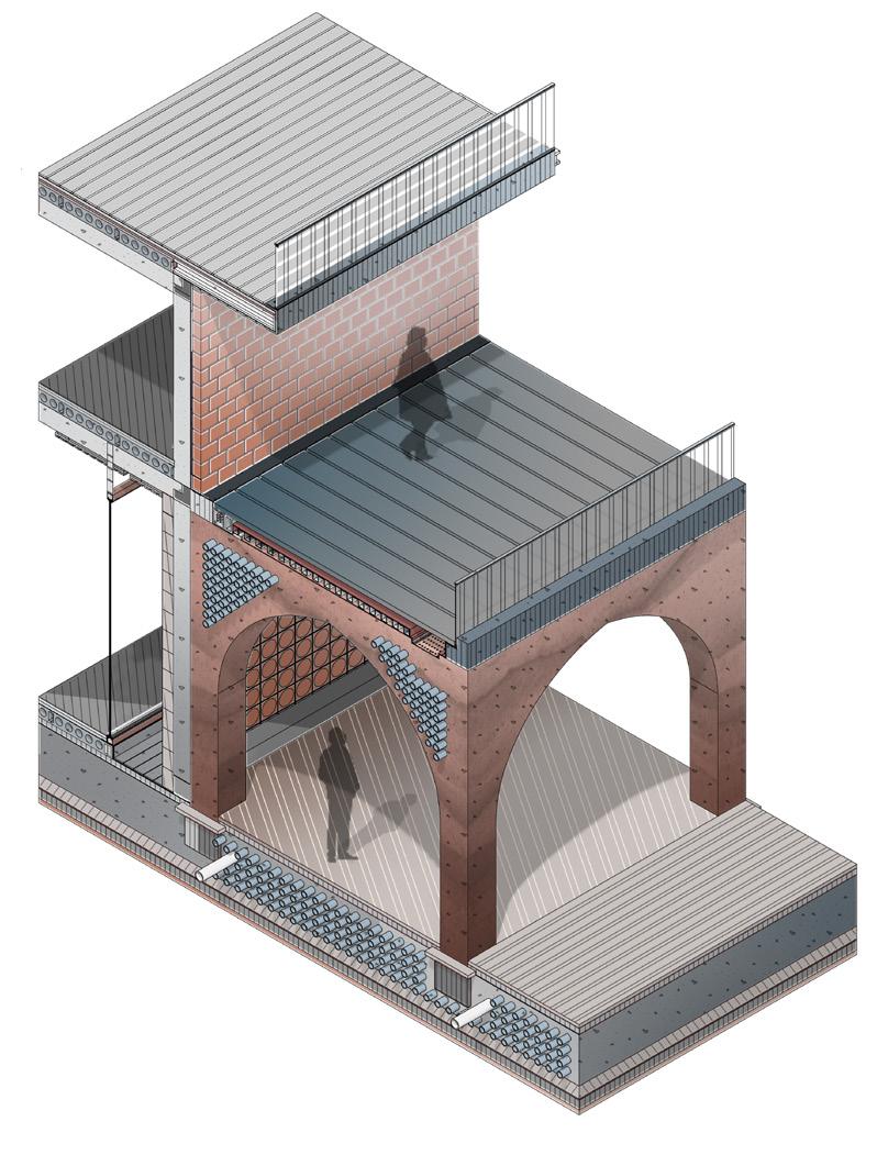 The current state of Manshiyat Naser is such that the industrial process of collecting, sorting and processing waste totally engulfs that public realm. The ground floor becomes part factory, part public pathway. I wanted to look at means of using infrastructure and to redefine what is to be considered as ‘ground level’ and create pockets of space that allow members of the public to separate themselves from the processes of waste management. Furthermore this approach will have to work in conjunction with both the existing and new housing scheme for the purpose of gradually
