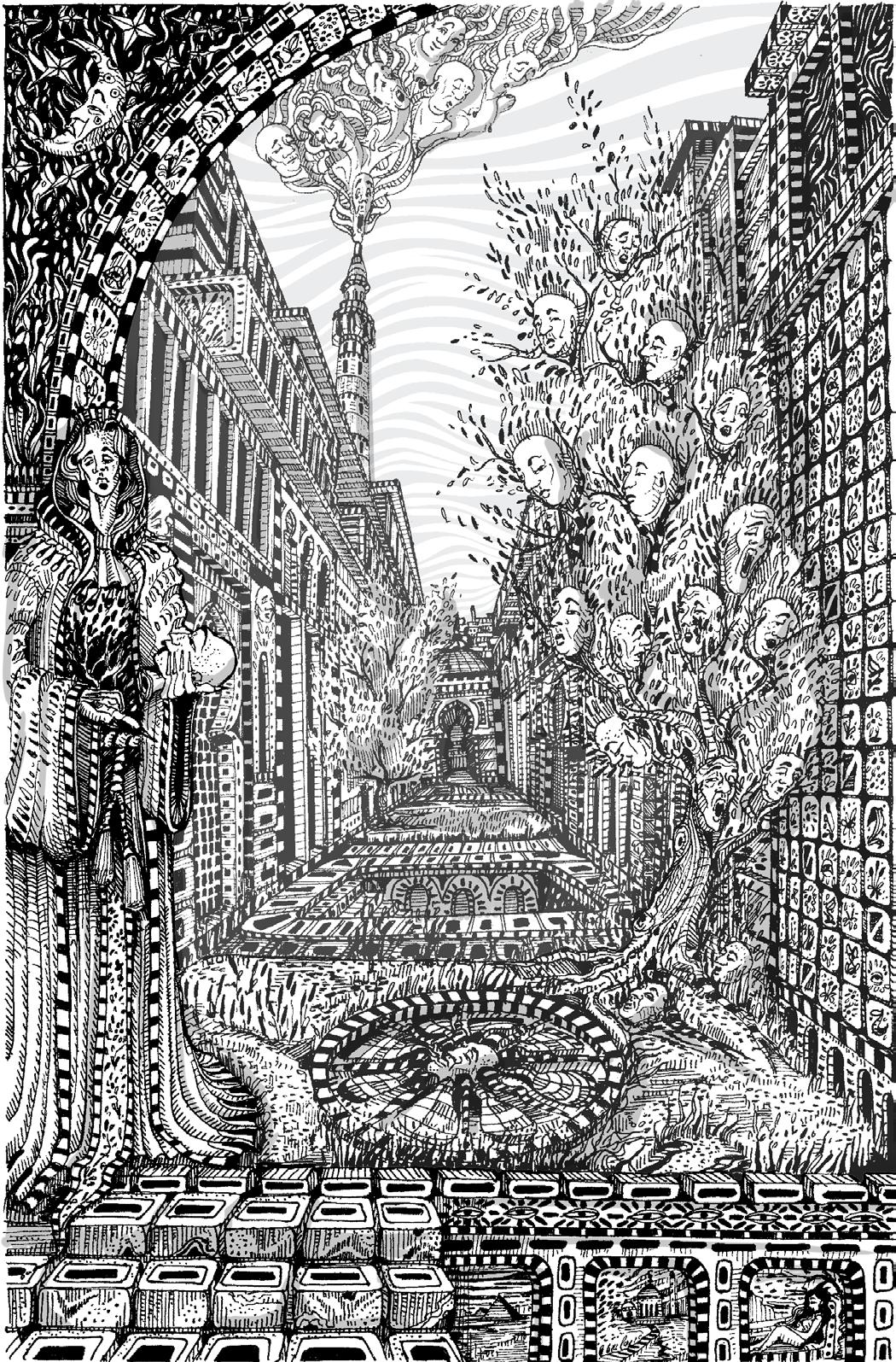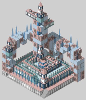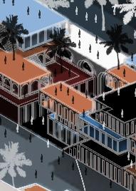 Here you see an attempt to create an surrealist depiction of the Ottoman palace. Similar to the study of the separate programmes that define Topkapi in the previous pages, in this instance multiple aspects of the Harem are layered on top of each other in order