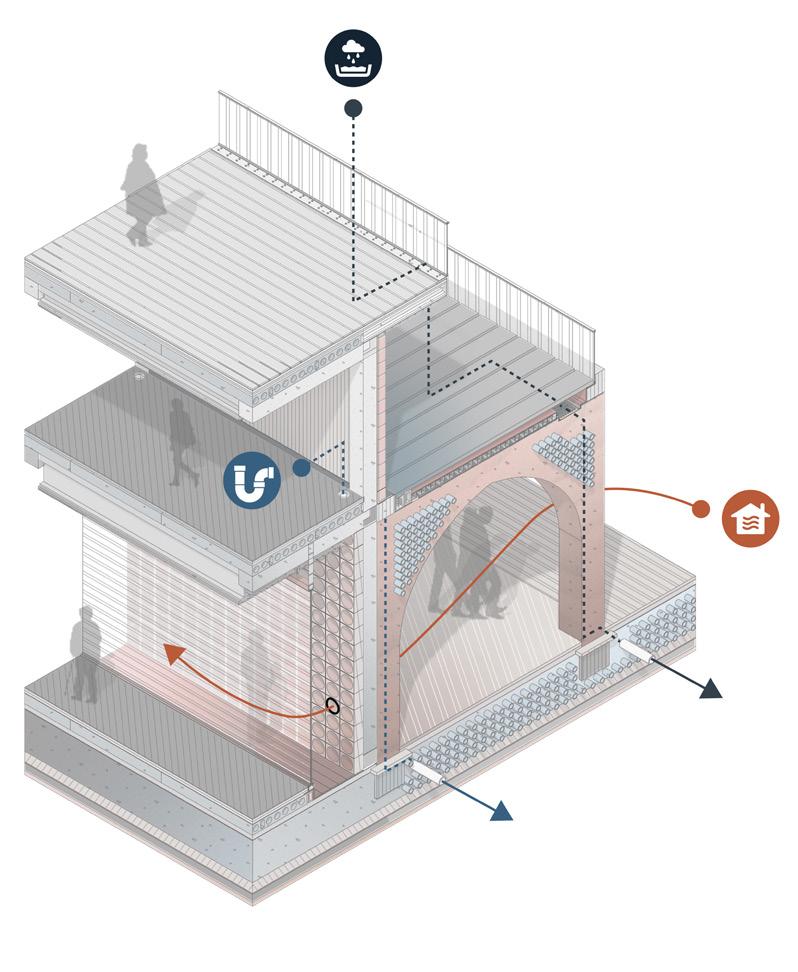2-Increasing the public’s revenue streams: Waste sorting is an essential aspect of this but it is how the materials are refined and processed that will have the greatest impact. This is done via education schemes and on site industrial processes during the construction and duration of the building.