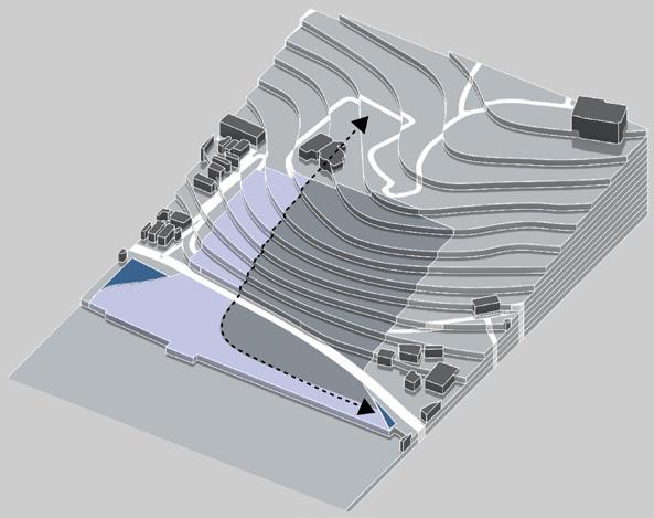 A more in depth look at the characteristics that define the site, and developing means of using the existing topography to define public and private space