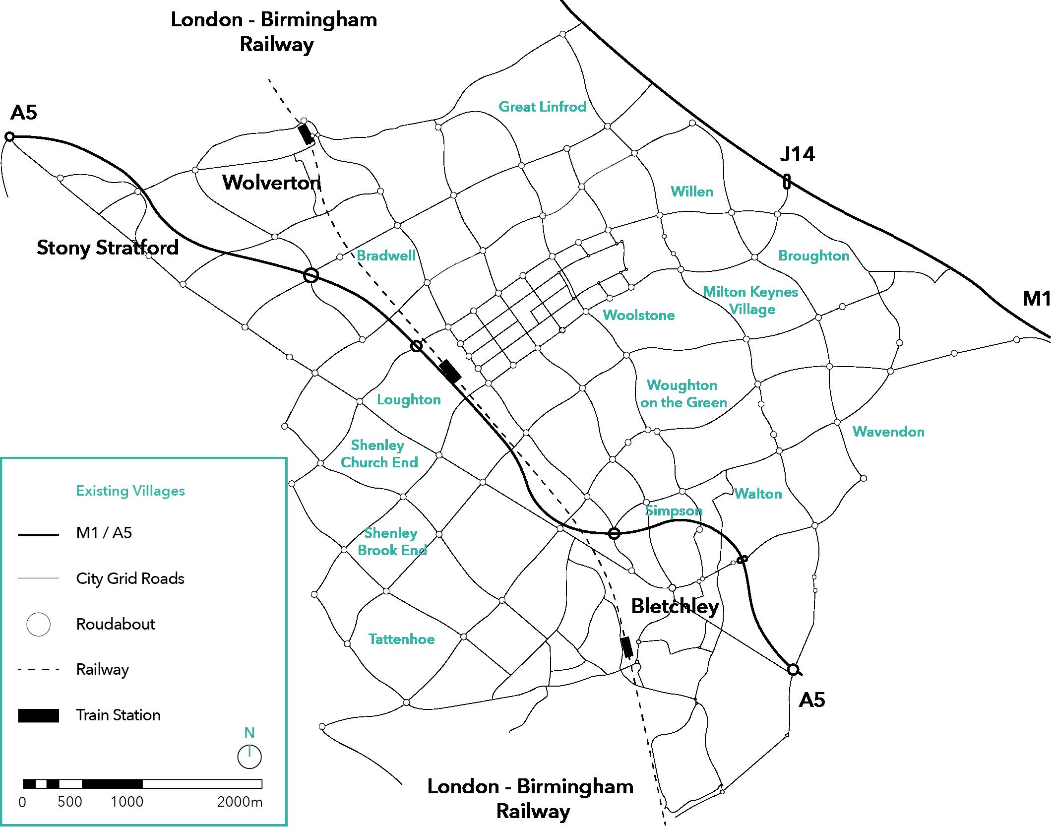 (Llewelyn-Davies et al., Volume 2, 1970) discusses the importance for MK “To incorporate Bletchley, Wolverton and Stony Stratford in a way that preserves their individual sense of local community” and “not to sweep them away” hence why each existing town preserves their own individual identity and does not adopt the grid structure of MK’s masterplan. Additionally, the existing “thirteen villages and the brickfields to the southwest of Bletchley” (The Milton Keynes planning manual, 1992) have been incorporated within the grid structure where each village occupies a grid square.