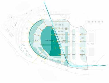 En phase 1, le centre accueillera environ 550 employés. Le projet met en valeur le double rapport au paysage, dépendant de la mer et de l’horizon au sud avec la montagne et le relief au nord. L’objectif est de créer une interaction entre ces deux échelles, tout en remettant en scène la nature.