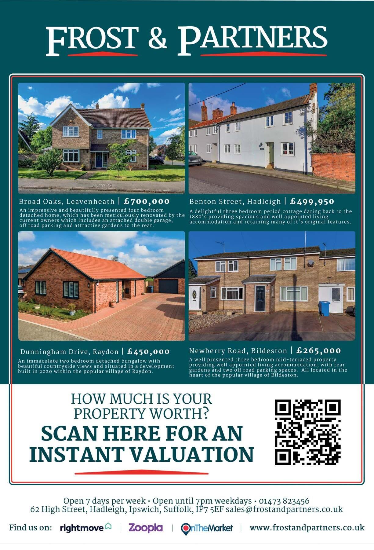 3 A place to feel lighter, slow down, reconnect and relax into your body. Chiropractic is a hands-on approach to wellness, caring for many conditions including: • Back, Neck & Joint Pain • Stiffness • Sciatica & Plantar Fasciitis • Muscle Spasms • Headaches & Migraines • Osteoarthritis • Tension & Stress • Poor Posture Book online www.kineticsuffolk.com Call 01473 806240 WhatsApp 07971 553050 1 Maiden Way, Hadleigh, Ipswich IP7 5EH @kineticsuffolk chiropractic appointment with Inga, including a treatment, for £50 (usually £70). Offer expires 1st June 2023 chapmanstickels.co.uk 01473 372 372 info@chapmanstickels.co.uk The Corn Exchange, Market Place, Hadleigh IP7 5DN Part of Investeq Holdings Limited Providing unrivalled local knowledge, combining traditional service with a modern marketing approach Suffolk and North Essex Estate Agents • Lettings • Valuations • Land www.hadleighcommunitynews.co.uk HUNT HOME FINANCE LTD Mortgage and Insurance Advice from your local broker Find us at - Unit 22, Hadleigh Business Centre, Crockatt Road, Hadleigh, IP7 6RH Your home may be repossessed if you do not keep up with the repayments on your mortgage.