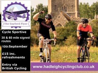 Gayford Flyer sportive will take place on Sunday, 10th September. It costs £15 to enter and this includes refreshments and music at
