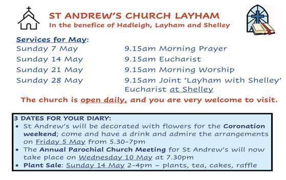 History will be made this month as the coronation of King Charles III takes place in Westminster Abbey, an occasion full of pomp and ceremony. There will be some of us that can remember the last coronation and for the majority of people this will be the first time they will witness history in the making. We all need something to lift our spirits because there has been so much unsettling news to contend with, strikes, rising prices, conflict and so it goes on. We all have been affected one way or another by what is going and not all of us cope very well. If you need someone to listen to you and share your concerns our healers are there for you. Please allow us to help you. Please telephone (answer machine) 01473 823282 or log onto www.hadleighhealingsociety.org or visit Hadleigh Healing Society Facebook page for an appointment.