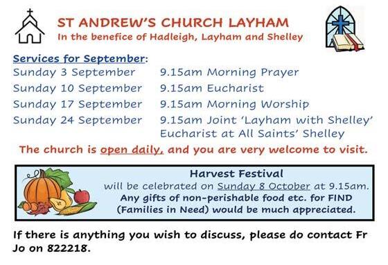 Community News September 2023 Contactless payments accepted www.beaumontcarssuffolk.co.uk info@beaumontcarssuffolk.co.uk Cars up to 8 seats available for local and long distance & SMS 07909 771321 Beaumont Cars 01473 855111 chapmanstickels.co.uk 01473 372 372 info@chapmanstickels.co.uk The Corn Exchange, Market Place, Hadleigh IP7 5DN Providing unrivalled local knowledge, combining traditional service with a modern marketing approach Suffolk and North Essex Estate Agents • Lettings • Valuations • Land chapmanstickels.co.uk 01473 372 372 info@chapmanstickels.co.uk The Corn Exchange, Market Place, Hadleigh IP7 5DN Part of Investeq Holdings Limited Estate Agents • Lettings • Valuations • Land Providing unrivalled local knowledge, combining traditional service with a modern marketing approach