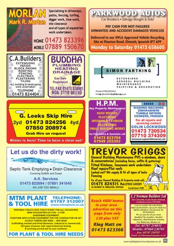G. Leeks Skip Hire 2yd 01473 824256 4yd 07850 208974 Grab Hire on request W in t e r is h e r e ! T im e t o h a ve a c le a r o u t !