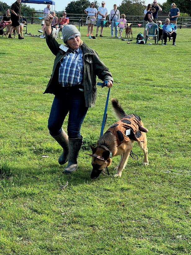 Whatever we are doing safety is paramount, not just for the riders but also for the volunteers who help them and of course, our precious horses. Over the past few months we have all had training to remind us about working safely with horses and our riders and help to better understand how to help both remain balanced and comfortable. Autumn brings with it lots of fundraising activities, which started with our fun dog show in September. There were lots of entries and we raised over £900. The photo shows one of our volunteers, Louise, in the fancy dress class with stable dog, Jax, doing their best to look like Jeremy Clarkson!