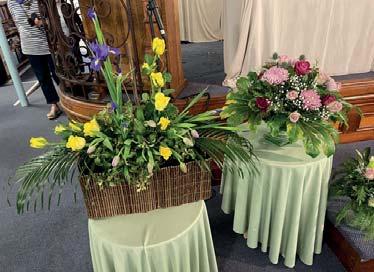 The winner of the competition for a vase of Spring Flowers was Fiona Quinn as above. ur next meeting will be on Monday 19 May 2025 in the Guild Room opposite St. Mary’s Church at 7.30pm. The speaker will be the Head Gardener of Beth Chatto’s Garden on The Past, Present and Future of Beth Chatto.