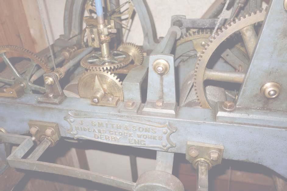 n Saturday 31 May from 12pm-5pm, we are o ering you the rare opportunity to climb the tower steps to view the Church clock’s 100-year-old mechanism and even to have the chance to help wind it. The clock was installed by ohn Smith and Sons of Derby in 1925. The clock takes the form of a ‘two train (strike and going) atbed with a double three-legged gravity escapement’. It is currently wound by a team of Kersey residents on a weekly basis.