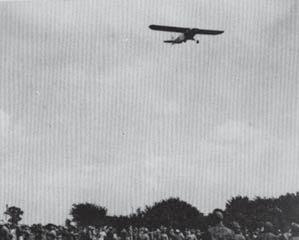 ust outside the village of Lavenham stands an old WWII air eld that during that con ict was occupied by the heavy four engine bombers of the US 8th Air Force’s 487th Bomb Group. The 3000 American servicemen stationed there knew it as Army Air Force Station 137 and along with the rest of the country welcomed the end of hostilities on May 8 1945. The Bomb Group’s o cial VE-Day celebrations were held over the long weekend of 25 - 27 of May. Amongst the dances, dinners, parties and shows, the most popular (and more unusual event) was an ‘open to all’ contest on the ying eld to catch one of a dozen softballs dropped from a Piper Cub ying at 200 feet - the catchers being rewarded with a bottle of scotch!