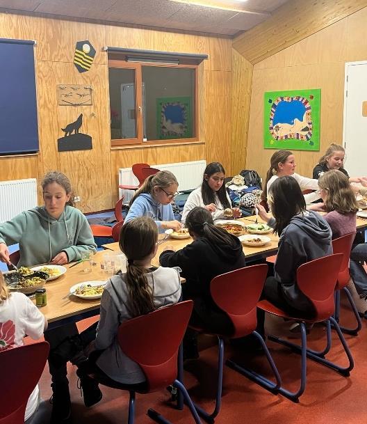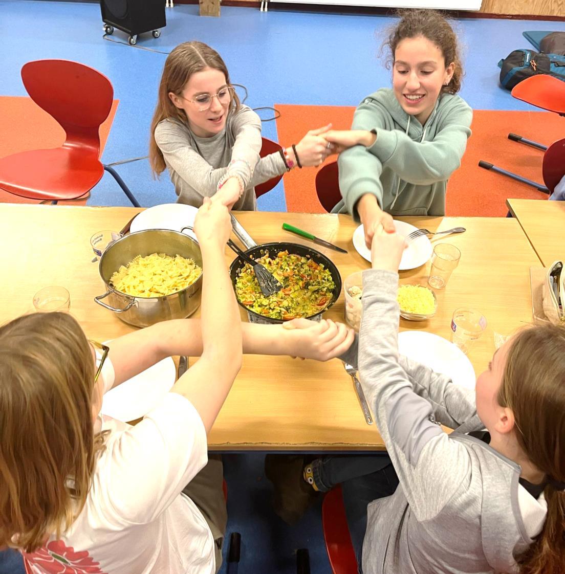 Eenmaal aangekomen hebben we lekker geschaatst en na afloop genoten van een lekker patatje. Terug op Haesburg zijn we begonnen aan het avondmaal; macaroni.
