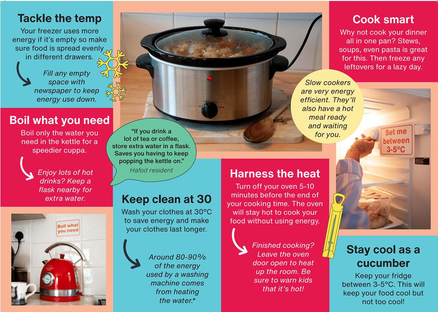 The best of our customer's energy saving hints and tips have been included in infographics, home nudges and room by room guides that will be shared on social media, placed in key community hubs and can be found at hafod.org.uk/energysavinginaction