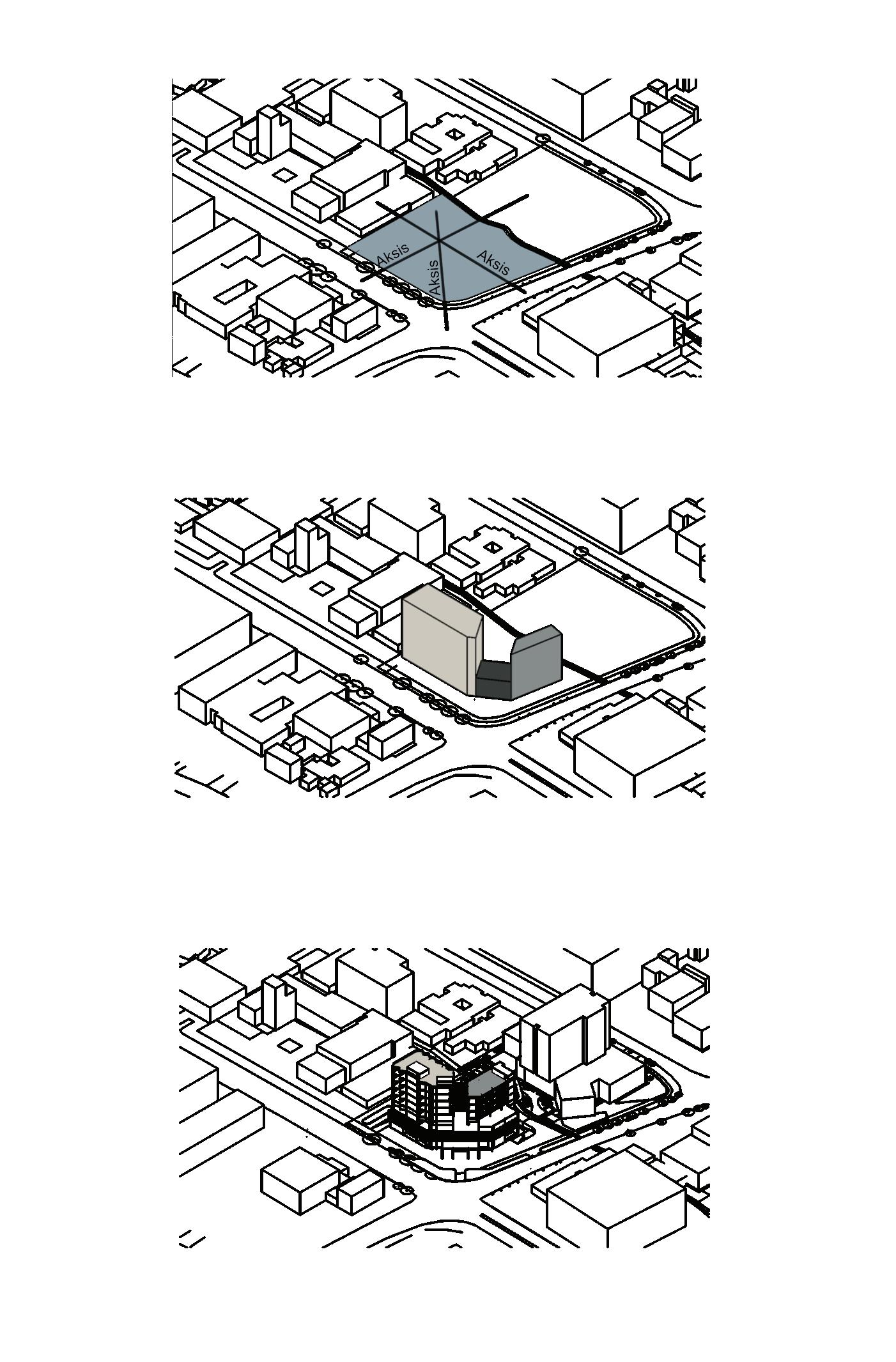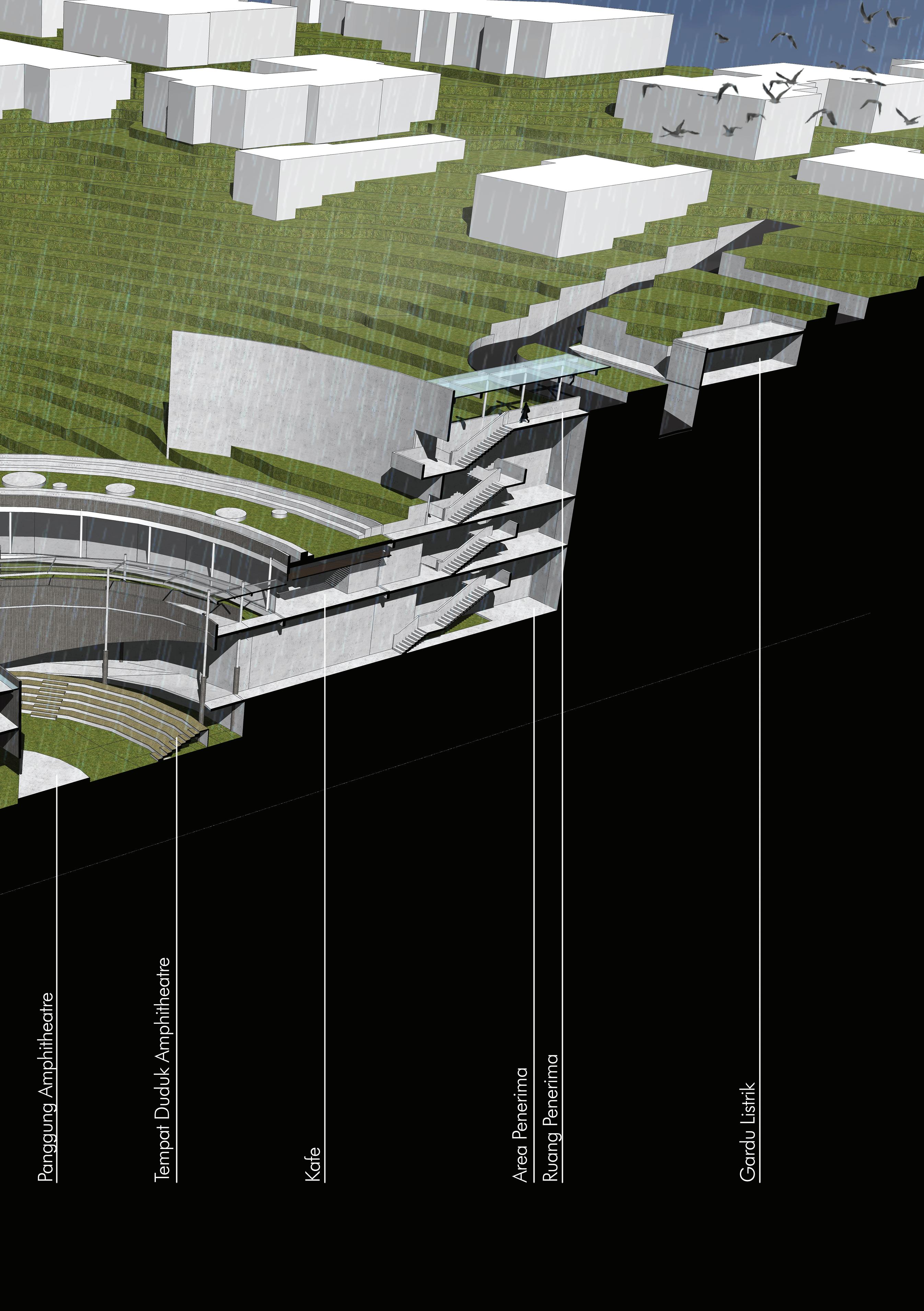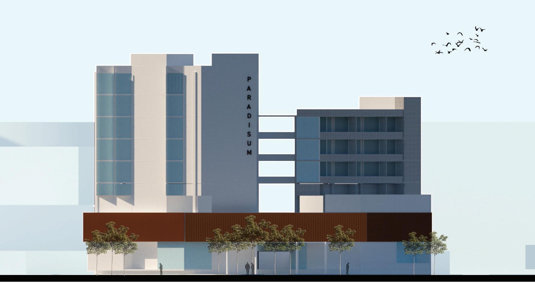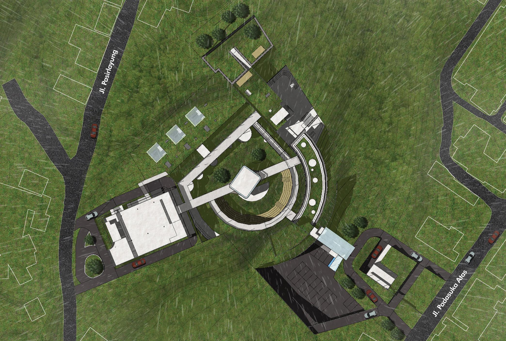 Paradisum means paradise in Latin, where the idea comes while visiting the site and seeing the site condition that was busy and crowded. The idea based on site condition to make a paradise in the middle of the city center by creating masses organization leads out the site with the result formed a boundary between inside and outside the site.