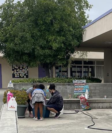 Students with their families school staff and community volunteers came together to beautify the campus and model being good environmental stewards
