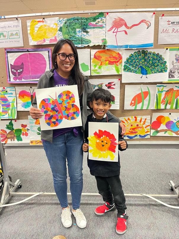 Last month, Hage students and their families had the opportunity to flex their creative muscles with guided lessons by Art Corps. This included exploring the works of Wassily Kandinsky, Paul Klee, and Eric Carle. It was so much fun to bring families together!