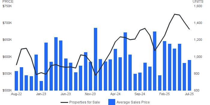 Average Sales Price| Average sales price for all properties sold. Properties for Sale | Number of properties listed for sale at the end of month.