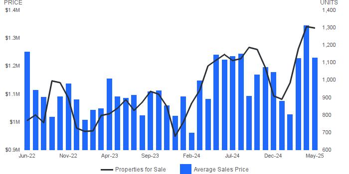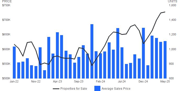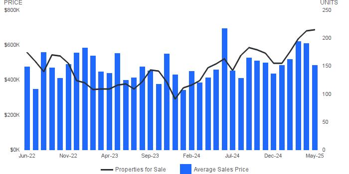 Average Sales Price| Average sales price for all properties sold. Properties for Sale | Number of properties listed for sale at the end of month.