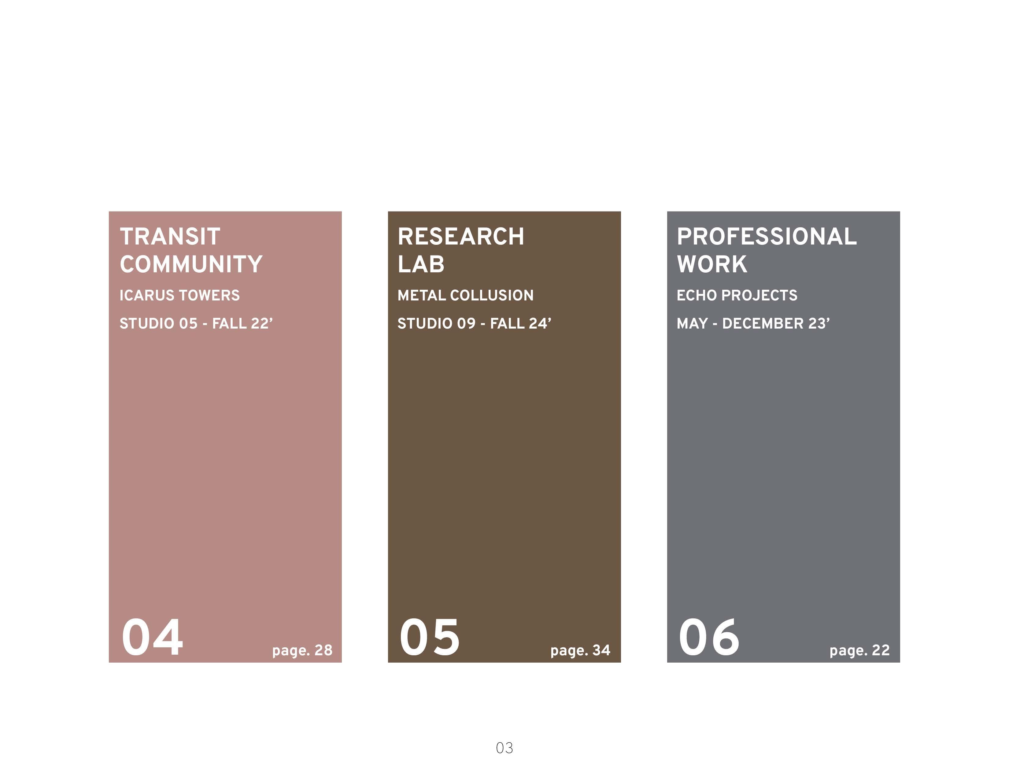 Collected Architecture portfolio of Griffin Reilly Hagen of Woodbury University, graduating class of 2025. Griffin worked as a fabrication specialist at Woodbury University's making complex for two and a half years and currently works at NAC architecture while completing his thesis degree project. Griffin is passionate about architecture and it's role against climate change, and what designers can do to advocate for a greener planet. While design and representation are his focal point in the works selected, fabrication plays a large role in his design process and allows him to create in a way that breaks the boundaries of what computer generated design allows.