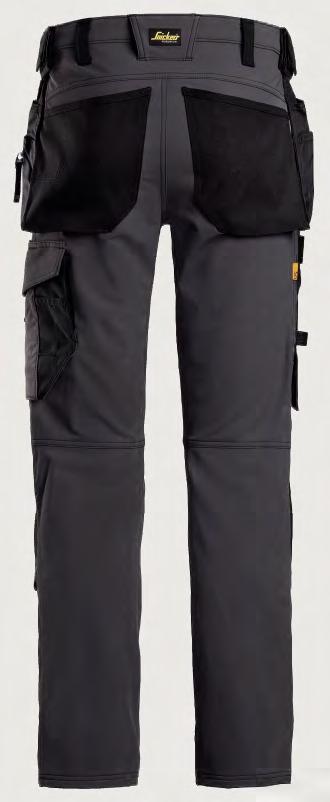 Stretch trousers with holster pockets made from full-stretch material for flexibility and comfort. The 2-way stretch fabric is supplemented by 4-way stretch panels in the back for enhanced freedom of movement. CORDURA®-reinforced Kneeguard™ pockets offer additional comfort and protection. Holster-, ruler-, and cargo pockets provide easy access to tools and feature CORDURA® reinforcement for durability.