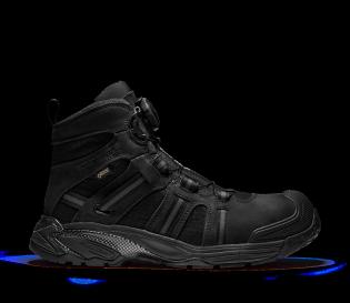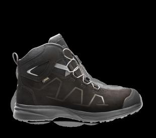 Talus GTX Low and Mid are discreet shoes, but still stacked with a number of high performance features. An athletic feeling thanks to a high cushioning poured PU midsole together with great grip from the pattern and compound on the rubber outsole. The upper is designed with durable leather from LWG combined with lightweight microfiber. Membrane from GORE-TEX® ensures high breathability while preventing water from getting inside the shoe. Speed lacing for stepping in and out the shoe quickly. For the user who prefers traditional lacing and even more discreteness, the speed lacing can be switched with the complimentary black laces. Fiberglass toe cap and soft nail protection. ESD function according to EN IEC 61340-4-3:2018.