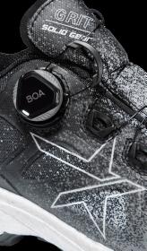 Solid Gear StarKnit is an upper constructed as one solid piece. Polyester yarn is knitted together in a precise and detailed process that provides a feather light, glove like fit without any seams. Because of its ability to vary in thickness across the upper, the StarKnit is called a smart construction. The knit is adjusted depending on what function it needs to fill, being thicker in areas where you need more protection and lighter where you need higher breathability and flexibility.