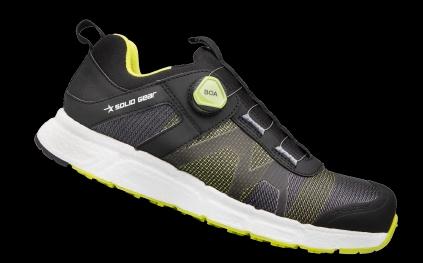 Solid Gear Dynamo is a unique combination of a shoe designed for trail as well as running. The complete ETPU midsole provides optimal comfort and rebound. The stability comes from the character of a trail shoe, with a special board construction for control of the flexing. The rubber outsole is developed to offer superior grip, and despite the lightweight of the outsole, it also contributes to the stability. The CORDURA® ripstop upper combined with the BOA® Fit System gives a great fit and feeling. Dynamo uses the specially developed high rebound OrthoLite® insole mainly made of recycled materials. Antistatic, oil resistance and anti-slip are all features of the rubber outsole that enables the Solid Gear Dynamo to be certified according to EN-20347:2012.