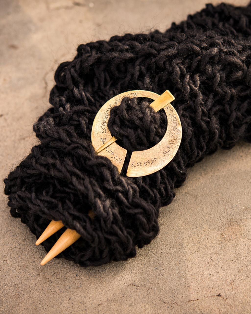 As a first generation New Zealander my cultural heritage is still predominantly European. I wanted to make a piece of functional jewellery combining my mother’s Scottish and father’s English background. I came up with the idea of making a penannular pin (which would have been used to fasten lengths of fabric to use as capes or shawls all over the UK) and giving it an updated design