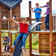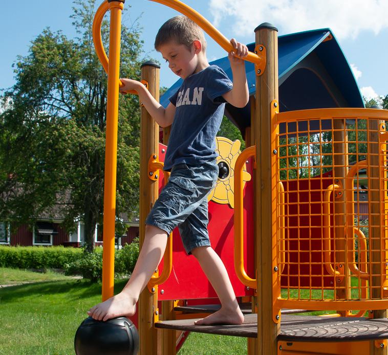 • Att för redskap av trä där endast en stolpe bär upp konstruktionen eller för dynamiska lekredskap där gäller särskild uppmärksamhet för stabilitet och fundament/förankring i mark.