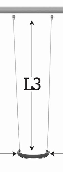 Utbredning av fallutrymme och islagsyta, Bild 7 och 8 samt tabell nedan varierar beroende på längden av den rörliga upphängningen av sitsen. Mät från sitsens ovansida till “gungledens” infästning, se bild 8. L3 visar den svängande längden som avses i tabellen nedan.
