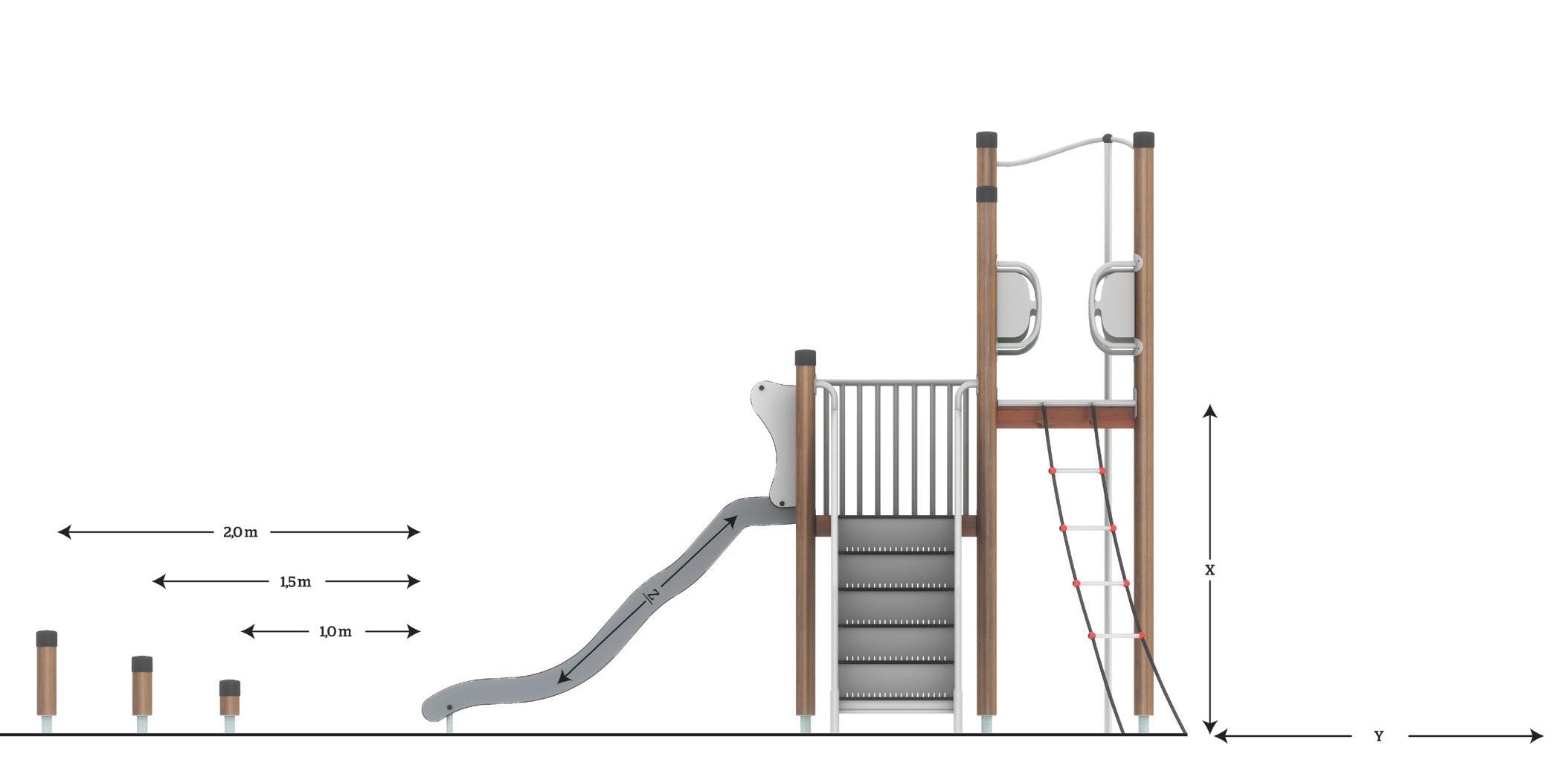 Utbredning islagsyta 1,50m framför och 1,00 m på sidan av rutschbanan.