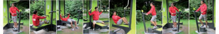 Los combis UrbanGym son combinaciones de 2 ó 3 productos UrbanGym en un solo aparato. Esto ofrece muchas posibilidades de entrenamiento en un espacio limitado. También hemos integrado elementos para personas mayores y usuarios con diversidad funcional. Se entrena con el propio peso corporal como resistencia. Hay muchas combinaciones diferentes y todas las unidades están disponibles con su propio suelo, marco de instalación o pueden instalarse directamente en el hormigón.