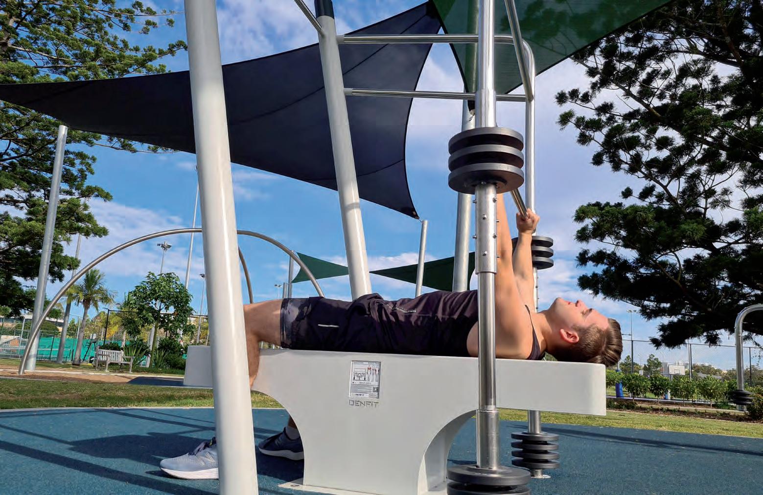 Denfit Gym está constituido por 30 sofisticadas unidades de fitness que realzan cualquier espacio público y lo complementan con un renovado uso deportivo. Las unidades son aptas para jóvenes y adultos y no importa si eres principiante o un atleta avanzado, todas las unidades son accesibles para todo tipo de usuarios.