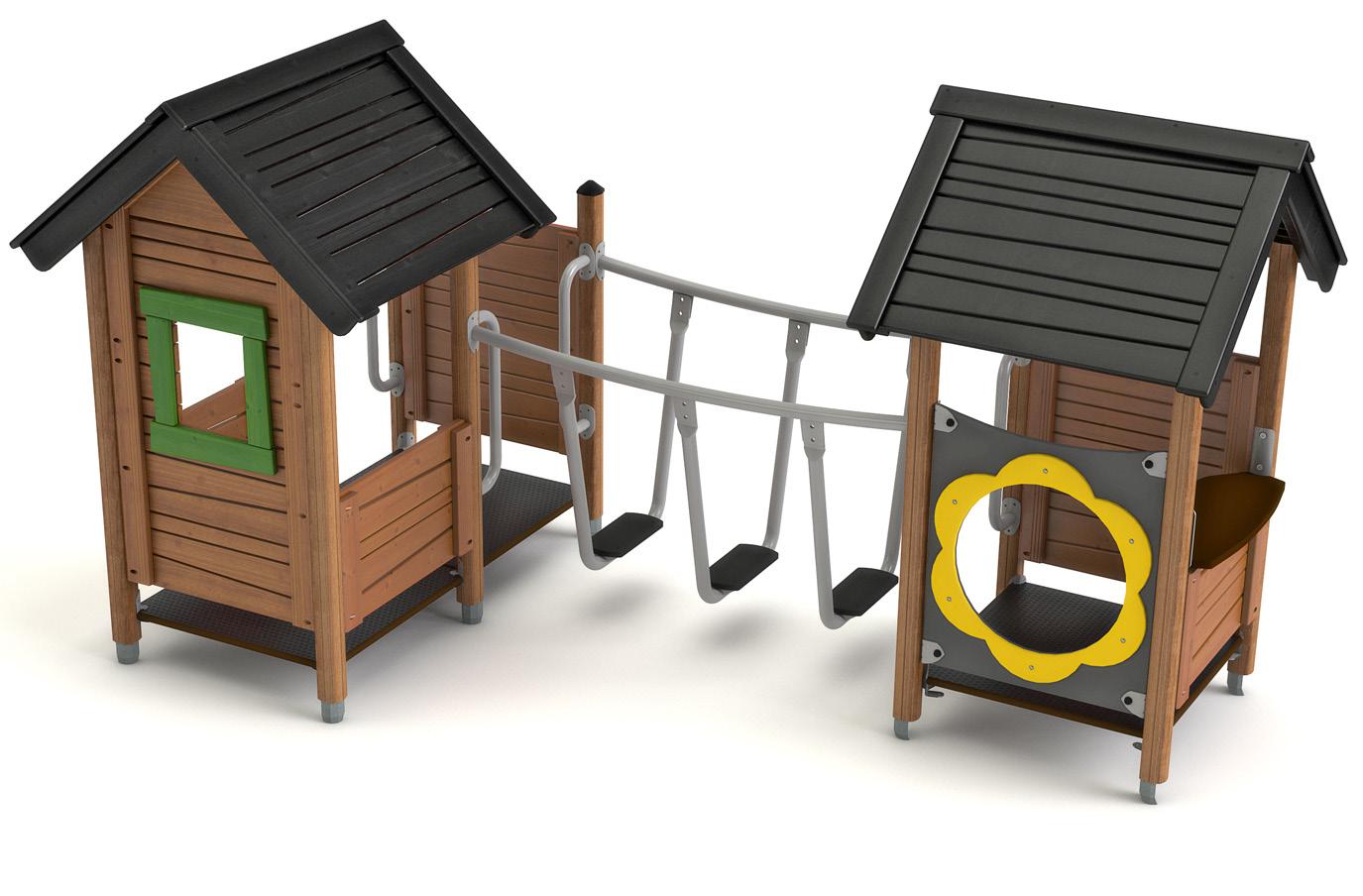 Une structure de jeu compacte, optimisant l'espace, Hemba offre un large éventail de fonctions de jeu, avec un bon équilibre entre les parcours faciles et les défis physiques. Les enfants les plus jeunes et les moins habiles peuvent monter en douceur jusqu'au pont supérieur en empruntant un large escalier et terminer leur parcours par une course exaltante sur le toboggan ondulé.