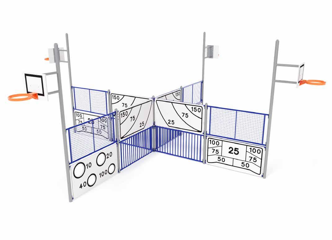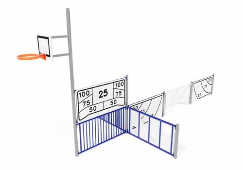 Accuracy and other coordination skills can be practiced and honed. Reverse facing basketball boards and hoops can be added to the back of the goals to increase the number of users in the system.