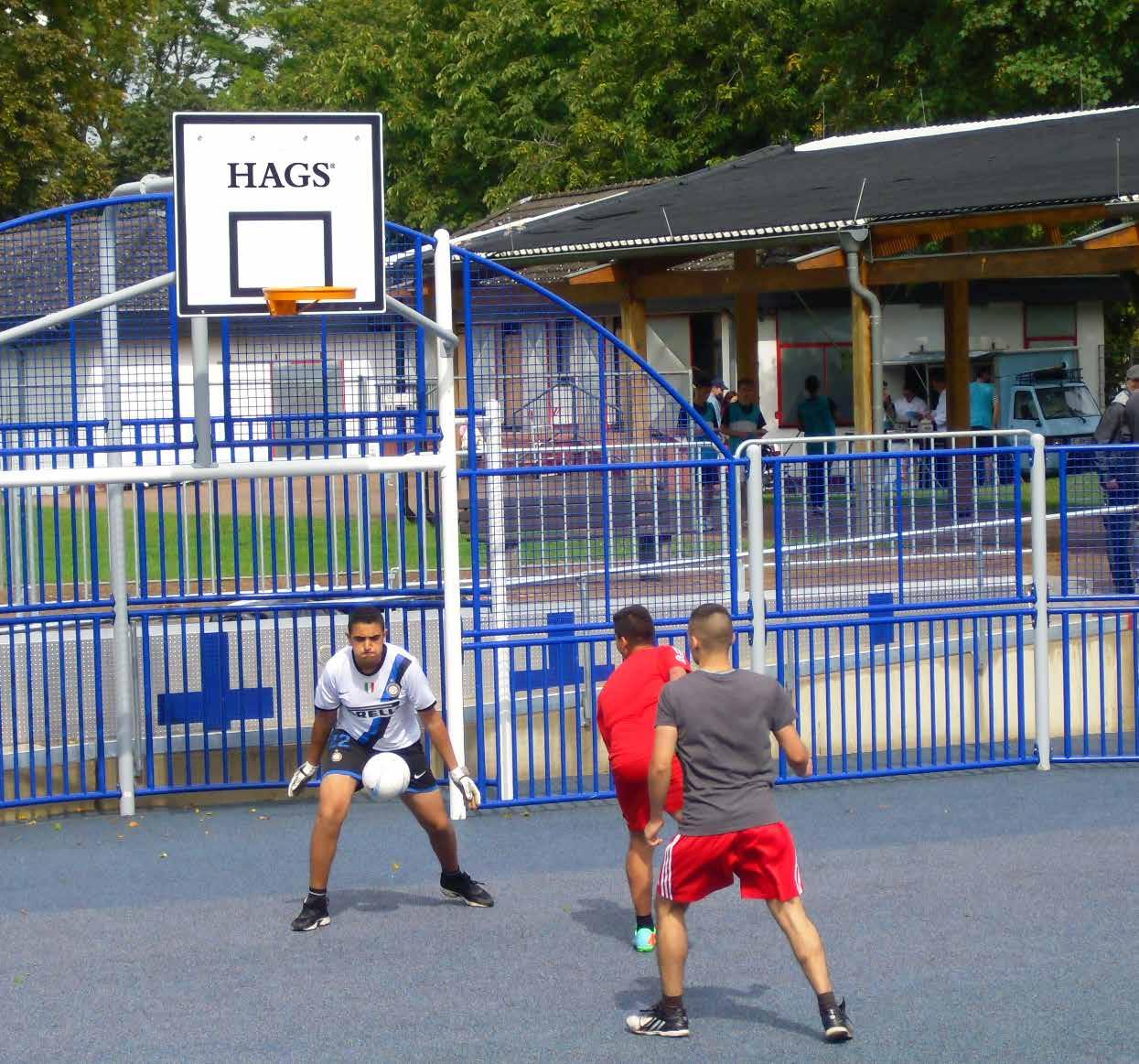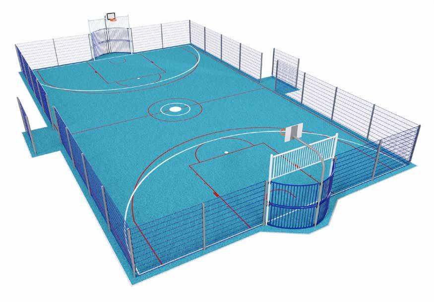 Denver 8021542 CC Blue 2no 9m x 6.5m mini courts 13,1 x 9,9 m2 142 64 Sacramento 8021541 CC Blue 9m x 9m playing zone, mini goals with 1m high walls 10 x 10 m2 110 64 ARENA Streetball 13 HAGS Sport & Fitness
