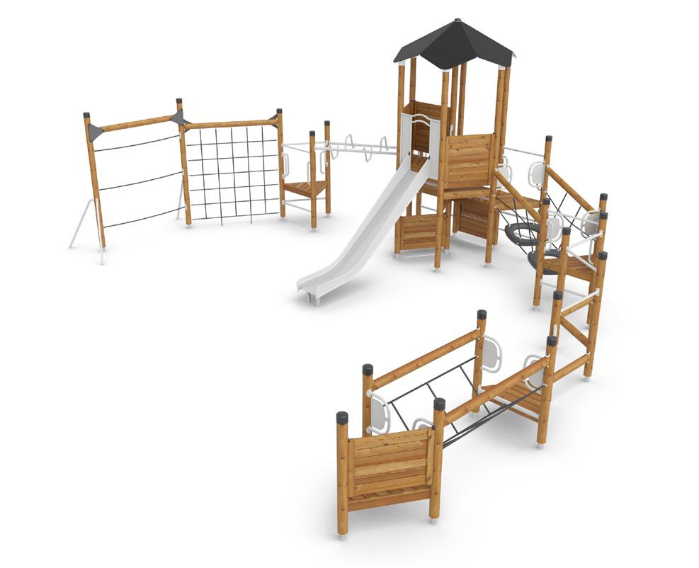 Unsere Spielplätze aus Holz sind eine bessere Wahl für den Umweltschutz, denn Holz ist eine natürlich erneuerbare, biologisch abbaubare und recycelbare Ressource. Bei der Herstellung entsteht nur minimaler Abfall, und anfallende Holzspäne können als Brennstoff oder Sägemehl wiederverwendet werden.