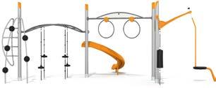 ÍNDICE Sostenibilidad 8 - 9 J uego para todos 10 - 11 SISTEMAS 12 - 87 UniM ini 14 - 27 U niMix 28 - 29 UniPlay 30 - 53 Circuitos de obstáculos 54 - 59 AKITO 60 - 65 NRG 66 - 73 NORNA 74 - 8 1 PlayCubes 82 - 9 1 SOLOS 92 - 145 Columpiar 96 - 107 Balanc ear 108 - 117 Desliz ar y girar 118 - 123 Esc alar 124 - 133 C ombinar 134 - 145 DEPORTE 146 - 205 Gi mnasio al aire libre 148 - 163 Depor tes de pelota 164 - 1 75 Denfit 176 - 205 MOBILIARIO 206 - 253 Mobiliario U rbano 208 - 229 Limpio y ordenado 230 - 23 7 Aparcabicicletas y otros 238 - 2 45 Shade Structures 246 - 253 Condiciones generales 254 SÍMBOLOS DEL CATÁLOGO ACCESIBLE ÁREA DE USO ALTURA DE CAÍDA EDADES RECOMENDADAS NÚMERO DE USUARIOS TIEMPO DE MONTAJE ESPACIO REQUERIDO m2 26 1.3 3-5 14 17